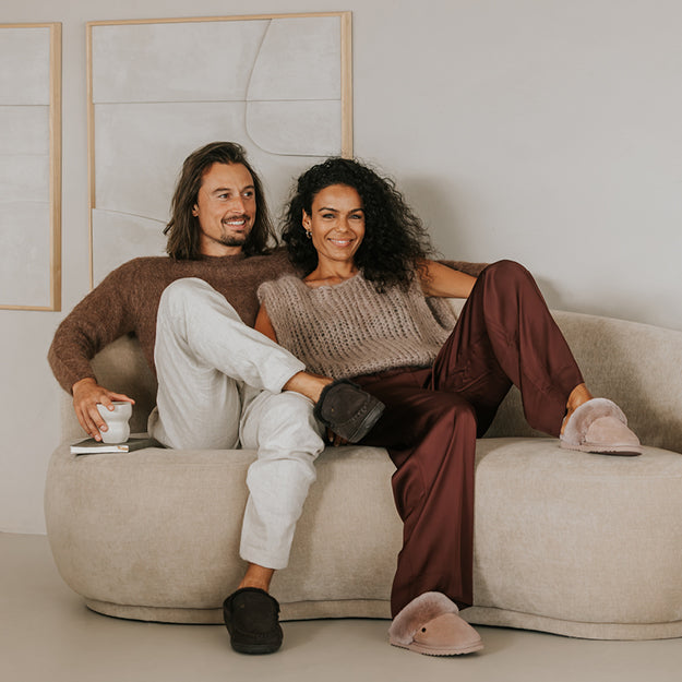L'automne est la saison idéale pour chouchouter vos pieds avec les pantoufles Warmbat Autumn Essentials. Notre collection propose une large gamme de modèles pour hommes et femmes : des pantoufles classiques aux pantoufles plus hautes qui offrent davantage de chaleur et de soutien. Toutes nos pantoufles sont fabriquées à partir de laine mérinos 100 % de haute qualité, vous offrant ainsi une chaleur naturelle, une bonne respirabilité et un confort ultime. Idéales pour les journées douillettes à la maison ou les petites promenades à l'extérieur.