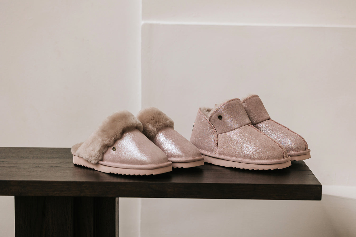 La collection Collie Metallic est disponible en deux modèles : Willow et Flurry, chacun disponible en argent et en or. Vous trouverez ainsi toujours la paire qui correspond parfaitement à votre style personnel et à votre intérieur. Avec ces pantoufles métalliques, vous ajoutez une touche de luxe à votre tenue quotidienne, même lors des journées les plus relaxantes à la maison.