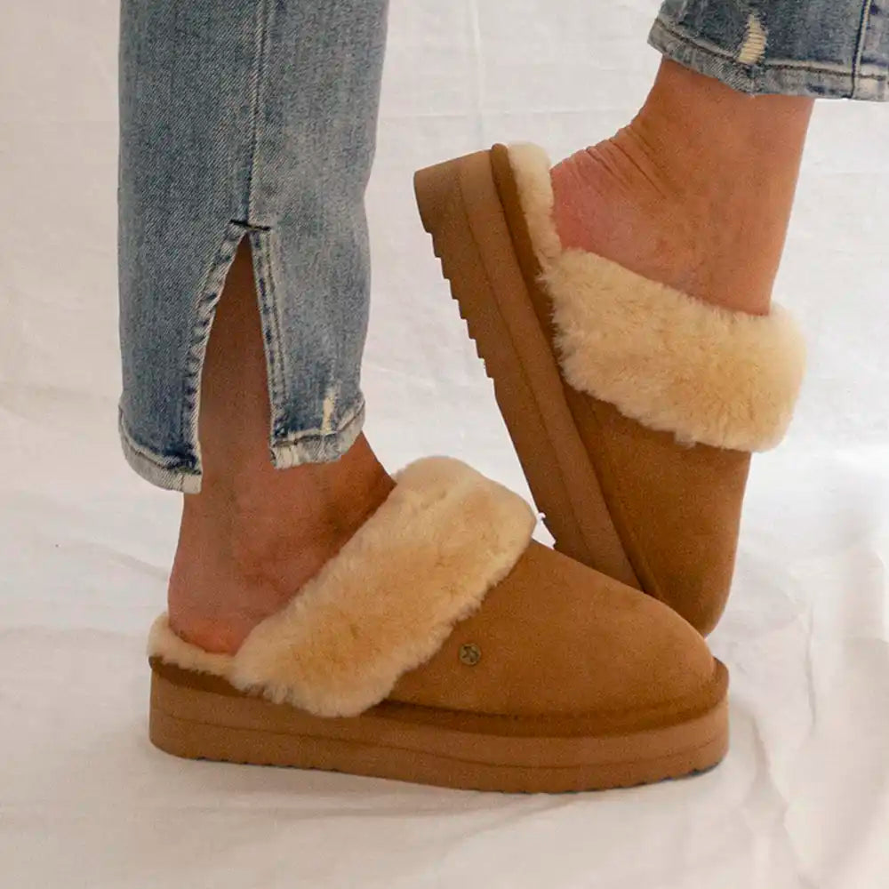 Collection Warmbat pour femmes - pantoufles, bottes, sandales et accessoires.