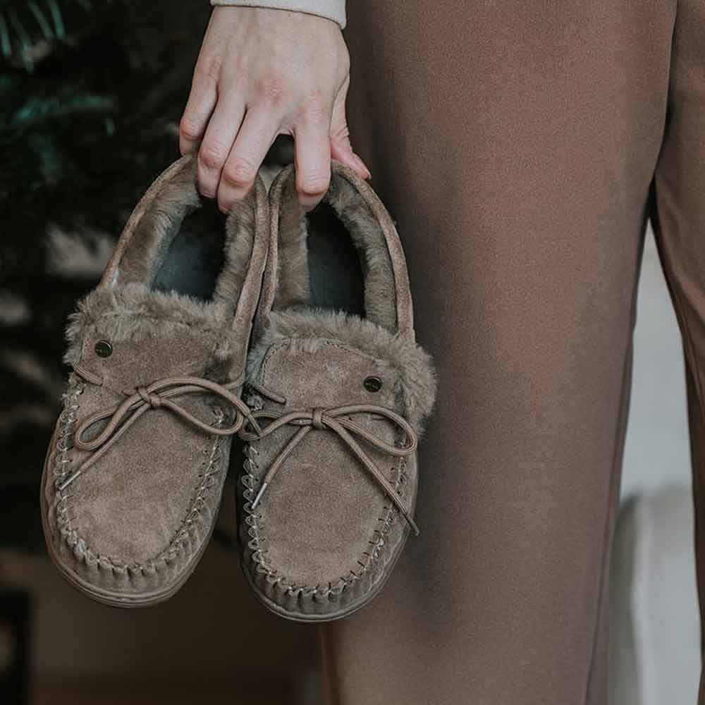Cette variante de notre pantoufle pour femmes très appréciée est dotée d'une semelle extra-épaisse pour encore plus de confort et de maintien. La tige est en daim de haute qualité, tandis que l'intérieur est doublé de laine mérinos, une matière chaude, respirante et ultra-douce.