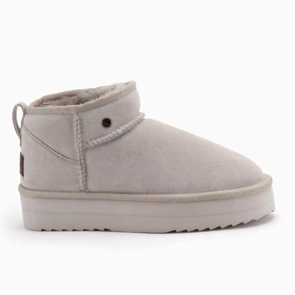 Les bottines sont fabriquées en daim de haute qualité, ce qui leur confère un aspect luxueux et une qualité durable. La doublure intérieure 100 % laine de mouton mérinos offre une chaleur et une respirabilité exceptionnelles, pour que vos pieds restent toujours confortables et bien aérés. Les semelles compensées robustes offrent non seulement une hauteur supplémentaire, mais aussi une excellente adhérence et une grande stabilité, pour que vous puissiez marcher en toute sécurité et en toute confiance, quel que soit le terrain.