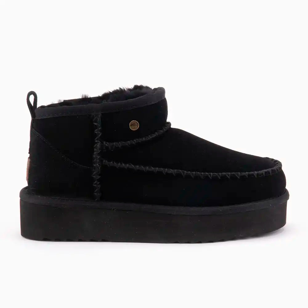 L'intérieur est doublé de laine de mouton mérinos à 100 %, pour des pieds chauds et respirants pendant les journées froides. Grâce à la semelle extérieure légère en caoutchouc, vous marchez confortablement et de manière stable, à l'intérieur comme à l'extérieur.