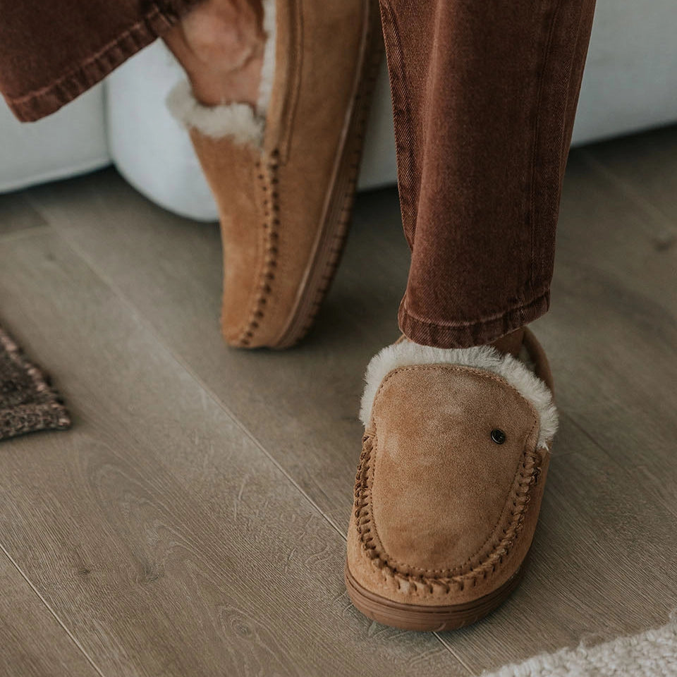 Le magnifique daim qui recouvre l'extérieur des pantoufles donne un aspect époustouflant. Un matériau luxueux, doux comme du velours et durable. La semelle des chaussures d'intérieur est en TPR (élastomère thermoplastique), ce qui permet une bonne adhérence pendant la marche (amortissement en cas de choc) et une protection en cas de froid (isolation). Le matériau est également recyclable à 100 %, ce qui signifie que vous contribuez à la protection de l'environnement!