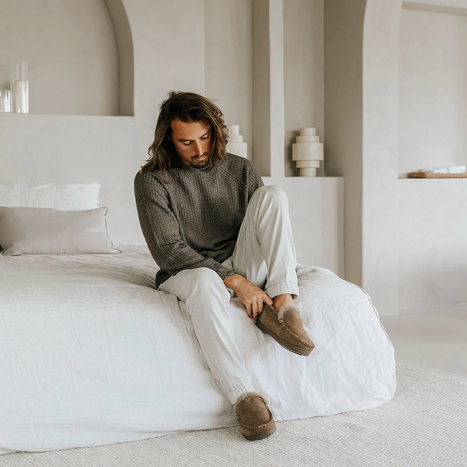 La doublure et la semelle intérieure des pantoufles sont composées à 100 % de laine de mouton australienne mérinos originale.