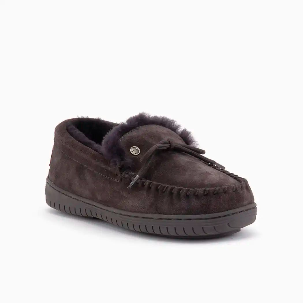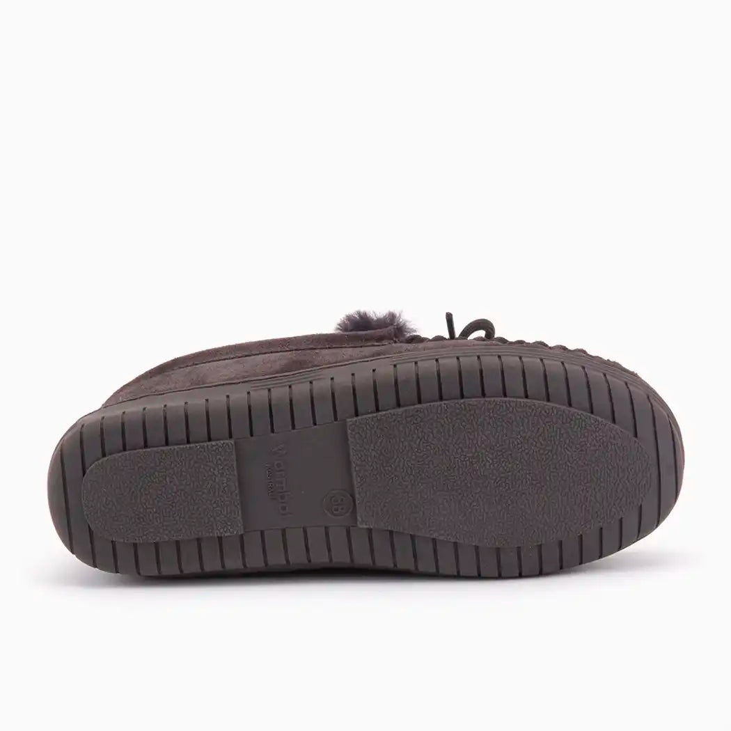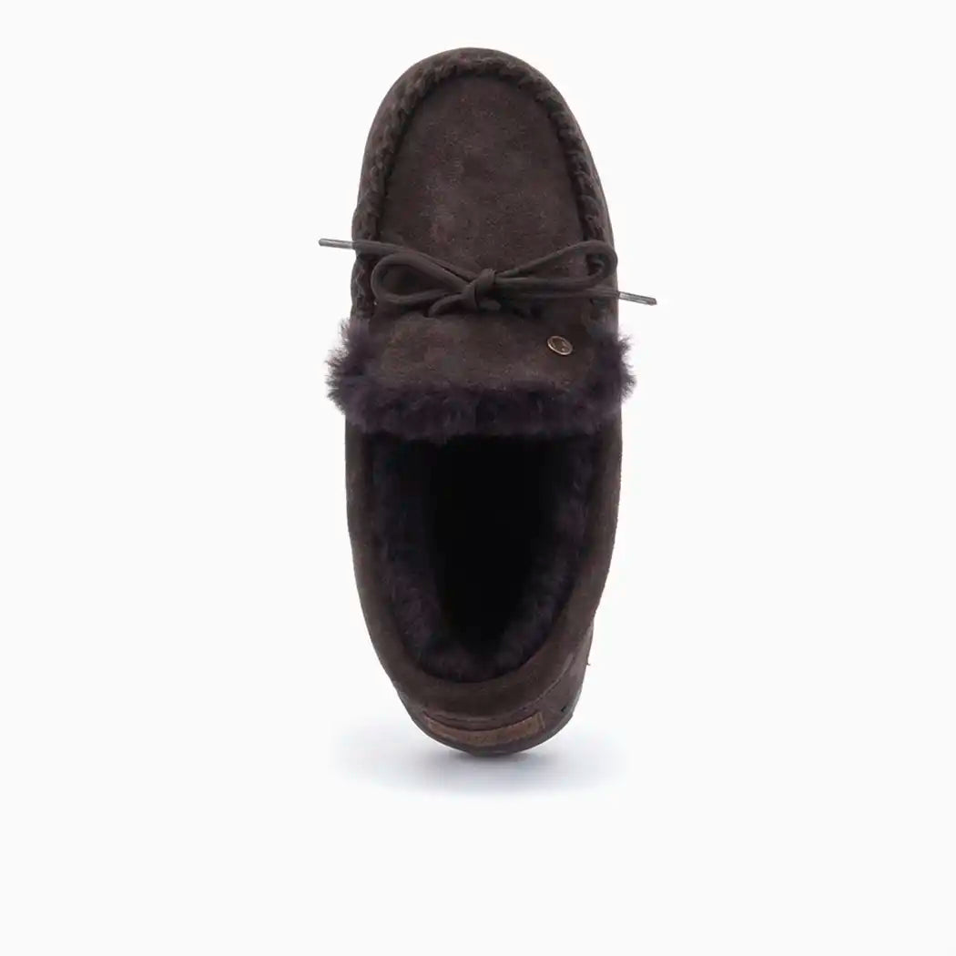 Semelle en caoutchouc solide et souple pour une adhérence optimale. Entièrement doublée de laine de mouton mérinos australienne 100 % originale. Réalisée en daim.